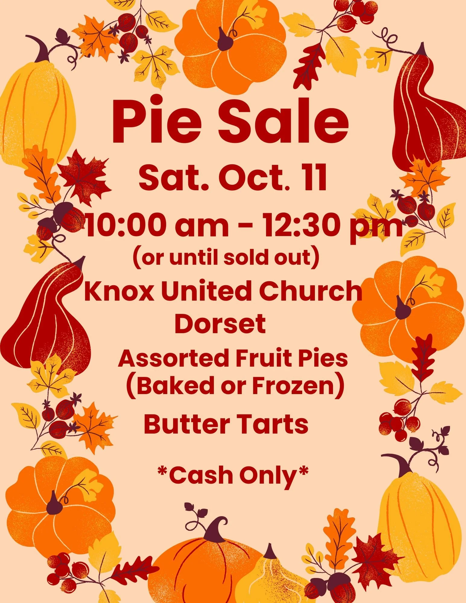 Knox United Church Women, Dorset, is holding the annual Thanksgiving Pie Sale.